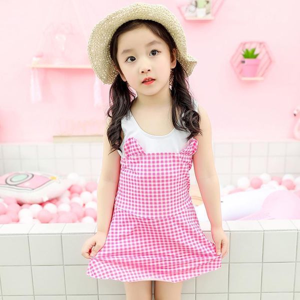 children's girl's lovely flower bow baby swimsuit small middle large children's one-piece princess skirt swimsuit pink plaid, Blue