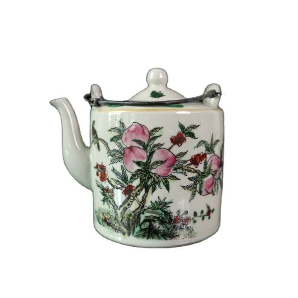 chinese old porcelain pastel shoutao patterned beam lifting pot teapot, Silver