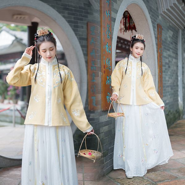 chinese traditional dress hanfu women fairy folk dance costume ancient chinese clothes oriental hanbok winter hanfu coat jl1488, Black;red