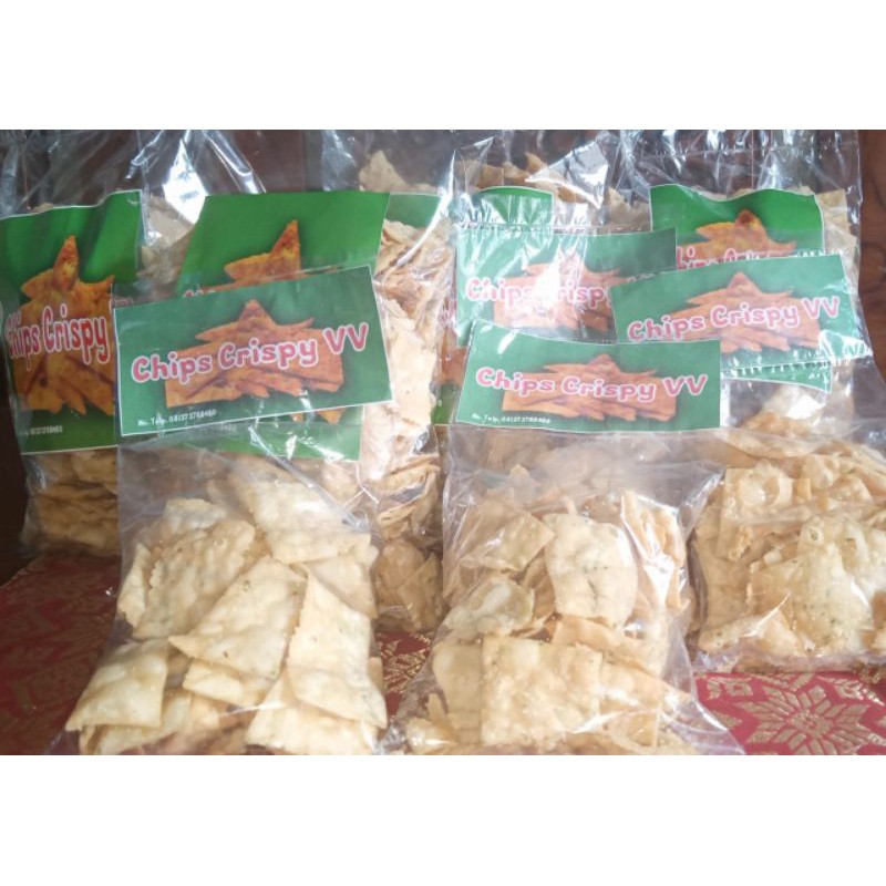chips crispy enak gurih nikamat.. cocok jadi teman santai setiap hari.. ada ukuran 450g dan 100g