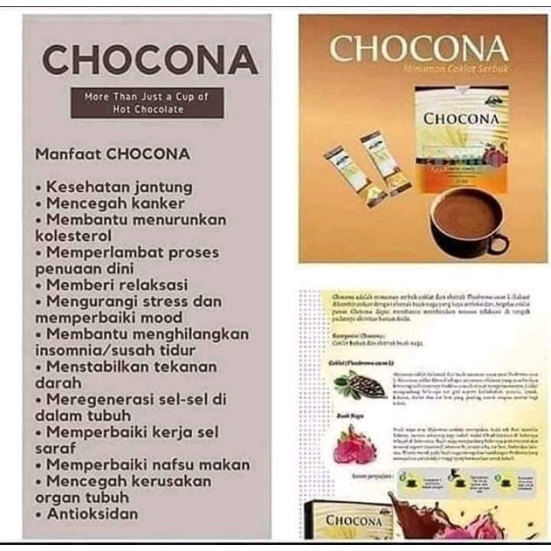 minuman serbuk coklat dari ekstrak Theibroma cocoa L(kakao) dikombinasikan dengan ekstra buah naga yang kaya antioksidan. Segelas coklat panas choconq dapat membantu memberikan sensasi relaksasi di tengah padatnya aktivitas harian anda.