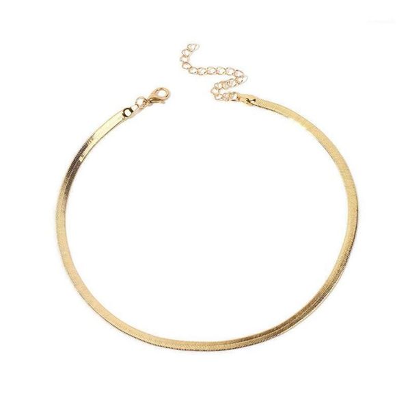chokers 2021 gold/silver plated adjustable 5mm flat chain herringbone choker necklace simple dainty jewelry for women 15" chocker216335, Golden;silver