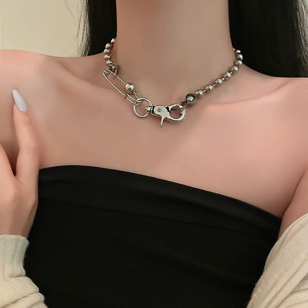 chokers korean summer safty pin round beaded chain choker necklace fashion temperament necklaces for women hip hop punk jewelry, Golden;silver