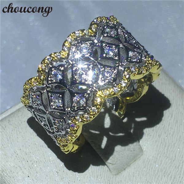 choucong 2018 handmade big ring diamond yellow white gold filled engagement wedding band rings for women men, Slivery;golden