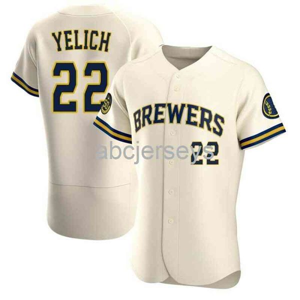christian yelich #22 cream ver1 baseball jersey xs-6xl, Black