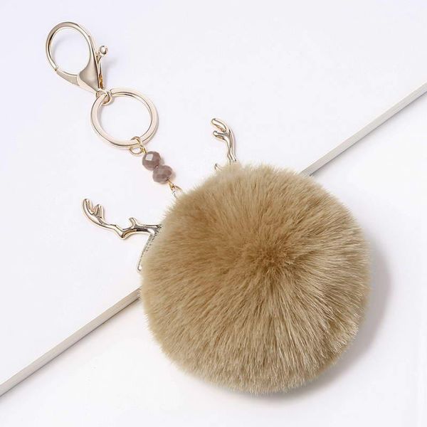 christmas deer horn pom keychain glass beaded bag decorative pendant key rings accessories wholesale keychains, Silver