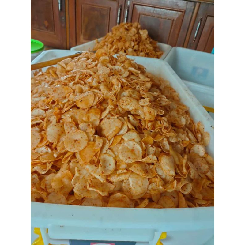 cimol kering terbuat dari tepung rasa pedas asin gurih