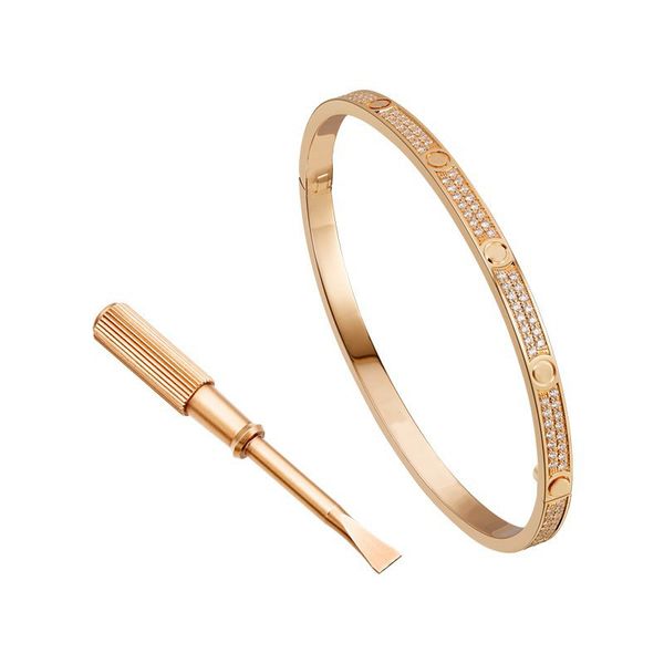 classic full diamond stainless steel bracelet fashion womens mens love iced out bracelets cuff bangles screwdriver jewelry, Black