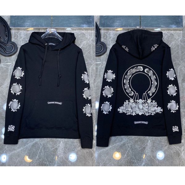 classic luxury men's sweatshirts ch designer hoodie fashion men women horseshoe sanskrit loose zipper jacket pullover hooded coat swea, Black