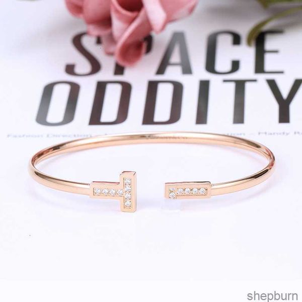 classic steel bangle open bracelet women man double t pattern luxurious designer gift t home gold silver diamonds non fading jewelry, Black
