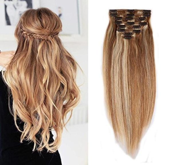 clip in human hair extensions 100 real remy thick double weft full head 7 pieces straight silky 7pcs 16clips 70g 2730color angel478436176, Black;brown