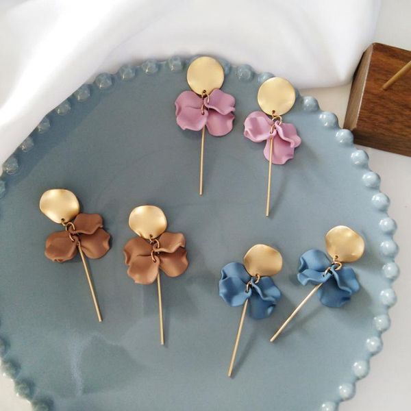 clip-on & screw back 2021 spring fashion soft matte petal clip on earrings geometric gold ear clips for women girl without piercing earring, Silver