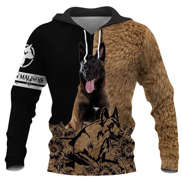 cloocl belgian malinois printed hoodies animals pets 3d print men clothing women casual sweatshirts harajuku pocket hoodie 220124, Black