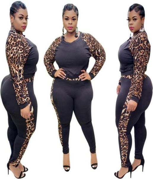 clothing set casual fashion crew neck leopard two piece night club set long sleeve autumn new jumpsuit plus size 5xl3286016, Black