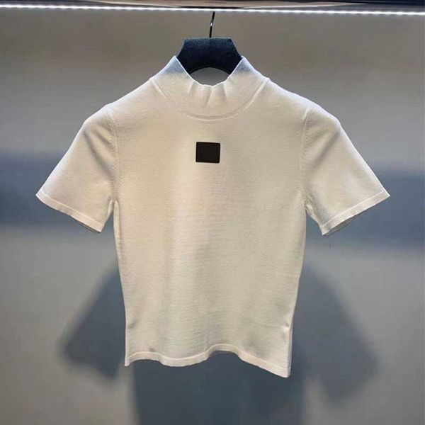 clothing women tees t-shirt spring summer black slim slim knitted undercoat women's short sleeve letter wwa, White