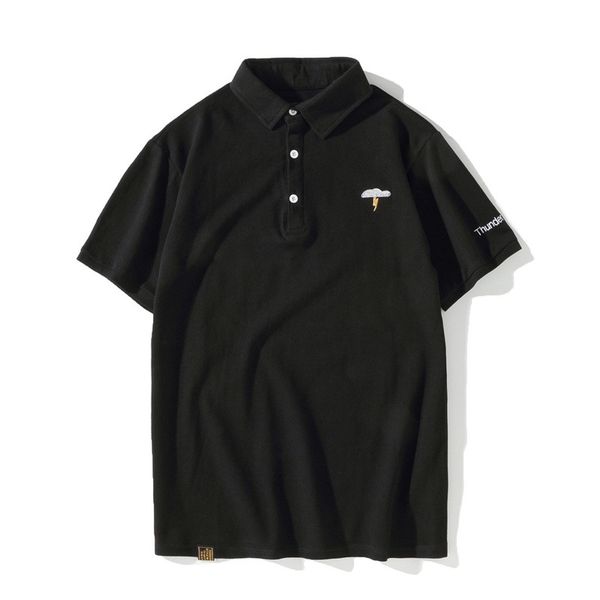 cloud embroidery short sleeve polo t-shirt men's plus size fashion fat loose t-shirt lapel simple summer dress, White;black