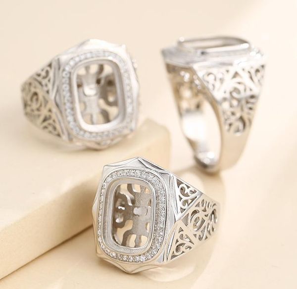cluster rings 10*14mm 925 sterling silver semi mount bases blanks base blank pad men ring setting set jewelry findings (without stone) a5330, Golden;silver