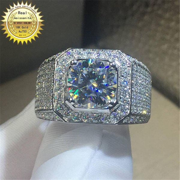 cluster rings 18k goldr ring 1.5ct d vvs moissanite men engagement&wedding jewellery with certificate, Golden;silver