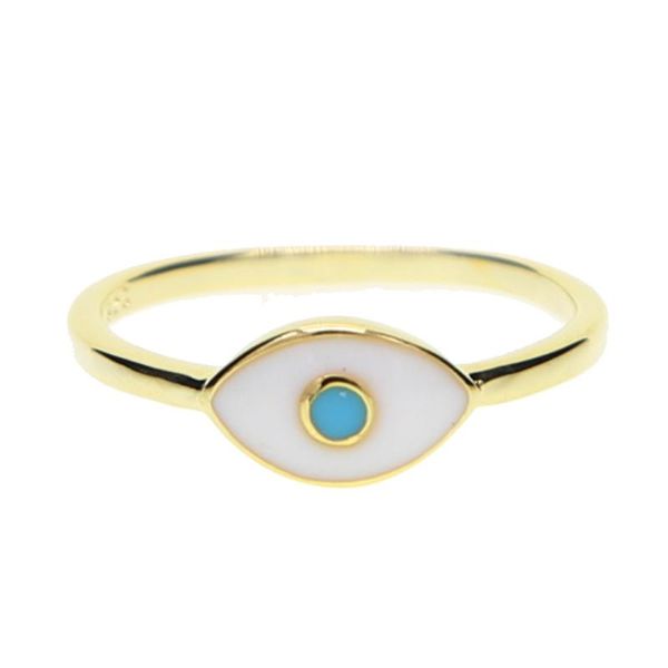 cluster rings 2021 wholesale jewelry white enamel eye gold filled delicate turkish evil single blue stone lucky girl, Golden;silver