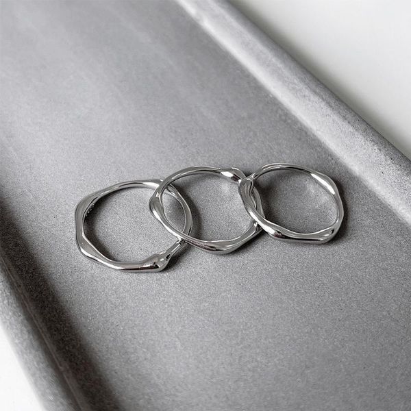 cluster rings amaiyllis s925 sterling silver irregular simple line thin ring punk fashion personalized index finger for female jewelry, Golden;silver