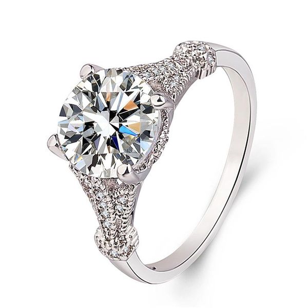 cluster rings bright crystal round lady promise accessories trendy 925 sterling silver ring women wedding bijou princess finger, Golden;silver
