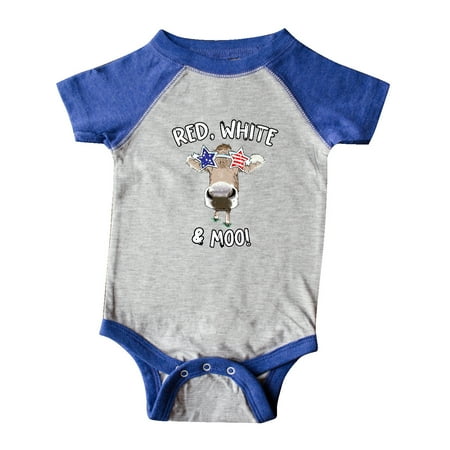 Inktastic 4th of July Red White & Moo Patriotic Cow in Shades Gift Baby Boy or Baby Girl Bodysuit