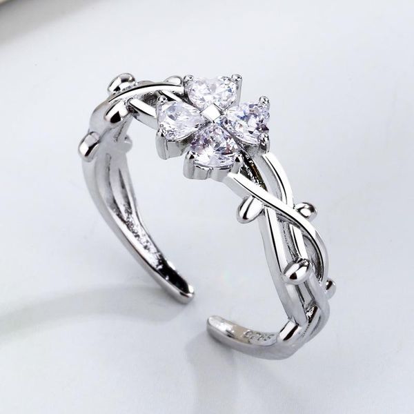 cluster rings kisslove designer style lucky flower s925 heart shaped zircon for women girl friend gift fashion jewelry, Golden;silver