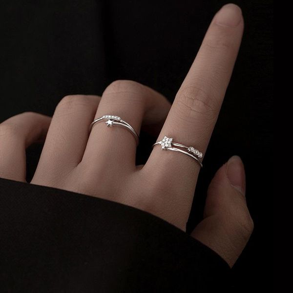 cluster rings kpop style crystal zircon aesthetics open star for women lady fashion temperament adjustable ring wedding jewelry gift, Golden;silver