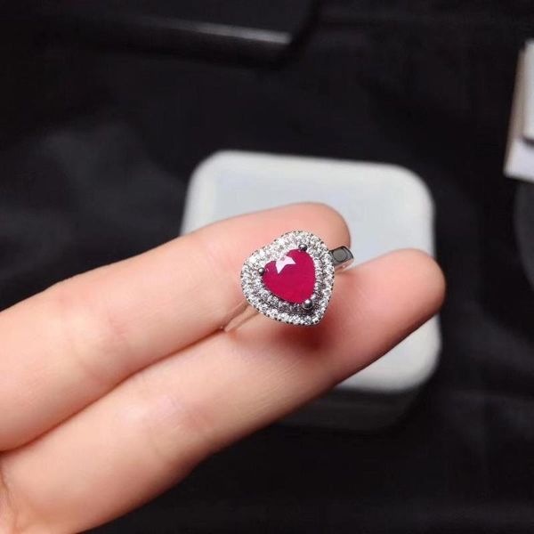 cluster rings ruby ring 925 silver ladies heart-shaped luxury elegant beauty wedding gift, Golden;silver