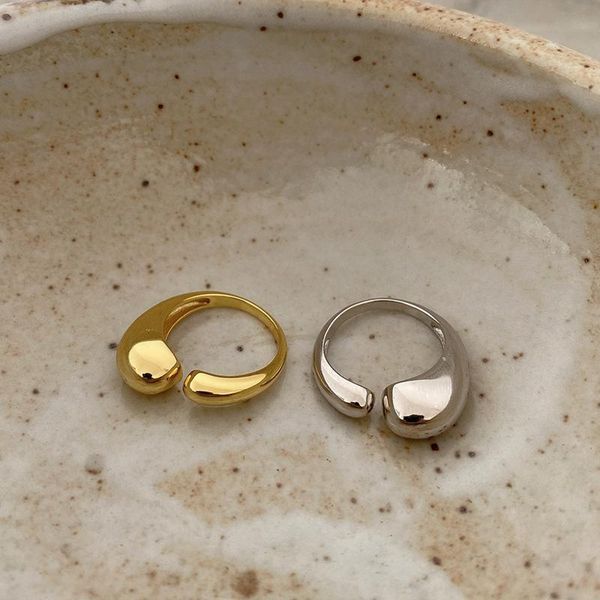 cluster rings silvology 925 sterling silver abstract water drop big for women glossy exaggeration punk ladies minimalist jewelry, Golden;silver