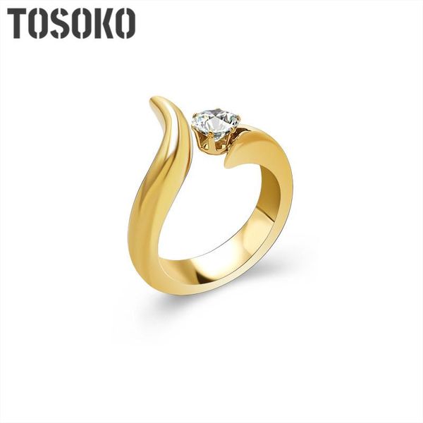 cluster rings tosoko stainless steel jewelry exaggerated abnormal one zircon ring women's fashion bsa168, Golden;silver