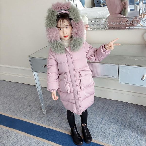 coat winter girls snowsuit clothing warm down jacket for clothes thicken parka real fur hooded children outerwear coats, Blue;gray