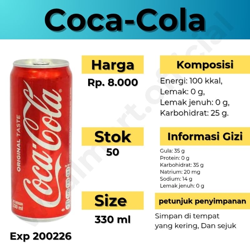 Coca-Cola adalah minuman bersoda berkarbonasi yang diproduksi oleh The Coca-Cola Company. Memiliki rasa khas yang manis dan menyegarkan, Coca-Cola populer di seluruh dunia sebagai minuman ringan yang cocok dinikmati dalam berbagai kesempatan.