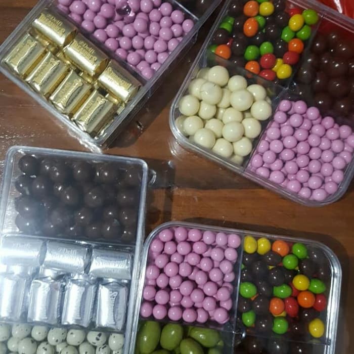 Cokelat hampers 4 kombinasi, isi kacang dan biskuit.