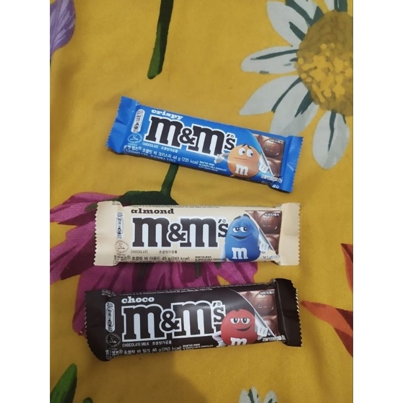 coklat M&m bar berat 44 sd 46 gr tergantung varian, ready stok bnyk mohon sertakan varian, ada 3 varian, almond, choco, crispy