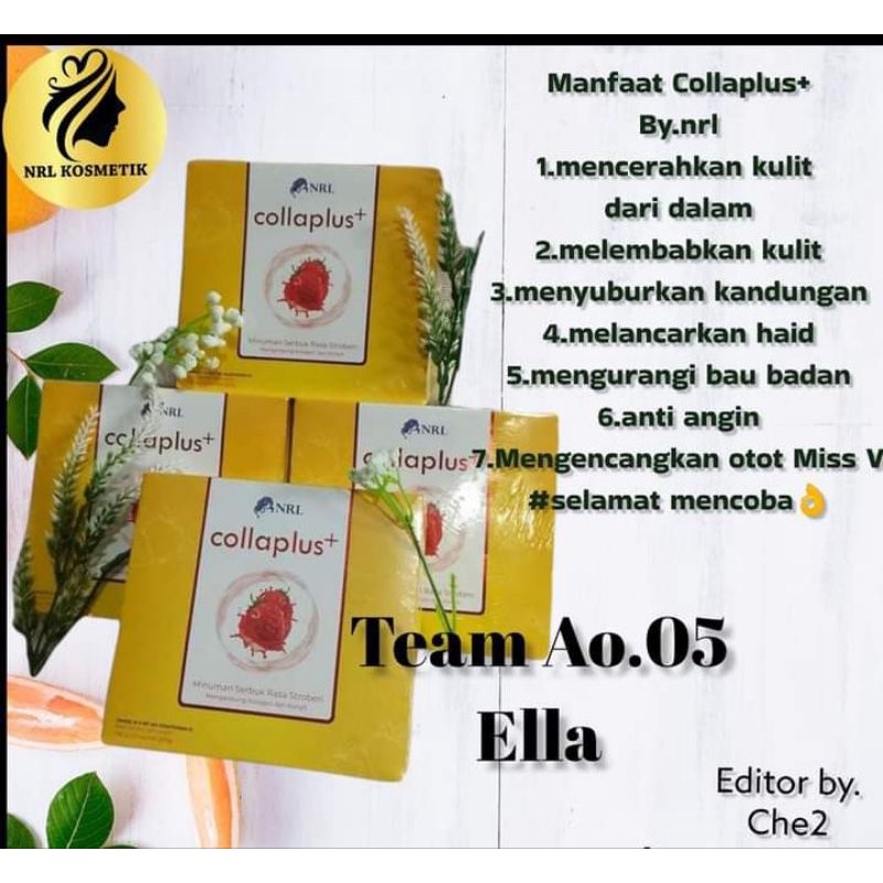 Nrl Collaplus merupakan minuman serbuk kolagen yg mengandung berbagai macam ekstrak buah-buahan dgn antioksidan tinggi untuk menjaga daya tahan tubuh dari berbagi macam penyakit. Kombinasi Vit C, Kolagen Glutathione dapat membantu menjaga kelembaban kulit serta mencerahkan kulit dari dalam secara menyeluruh. Selalin itu mengandung extract temulawak, kunyit, dan lidah buaya yg sangat baik untuk merawat organ kewanitaan.