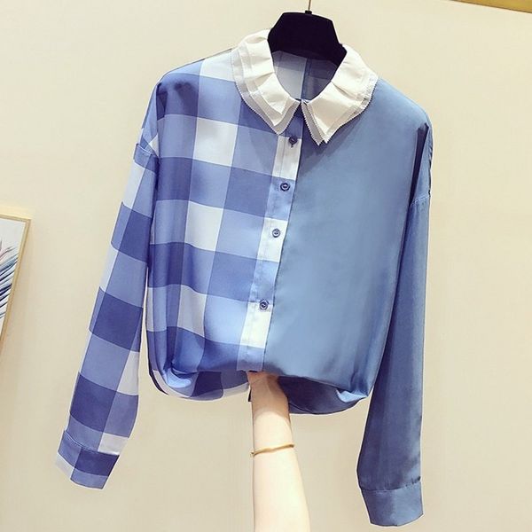 color block female shirts 2020 new autumn single breasted turn down collar long sleeve blouses casual women office lady, White