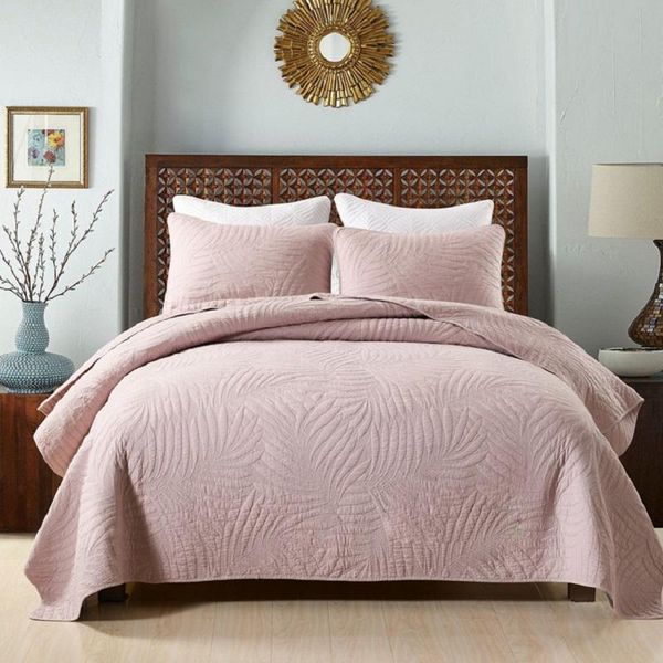 comforters & sets chausub pink bedspreads quilt set 3pcs cotton quilts embroidered quilted bed cover with 2 pillowcase king queen size
