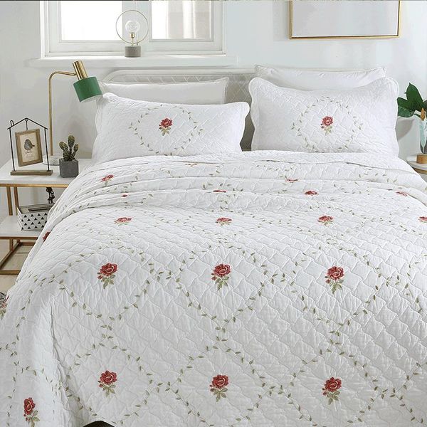 comforters & sets white bedspreads quilt set 3pcs jacquard cotton quilts for double bed cover pillowcase king queen size summer coverlet bla