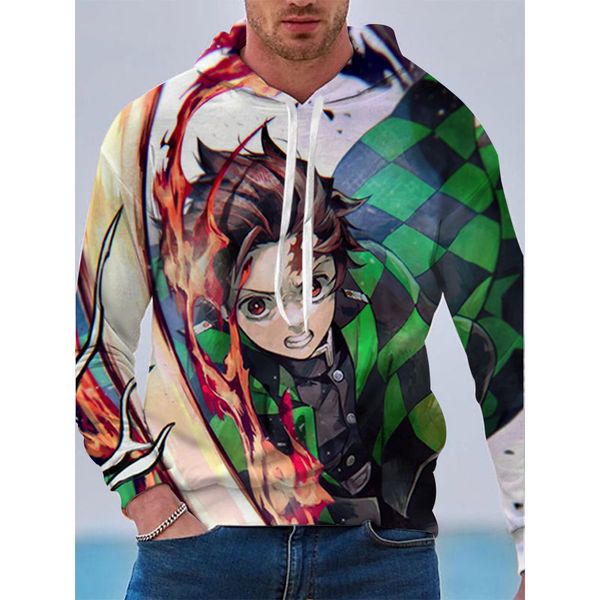 comic blood pattern men is a 3d printed hoodie visual impact party punk goth round neck kimetsu no yaiba oversized hoodie sweater, Black