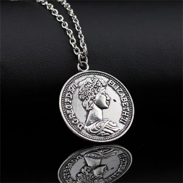commemorative coin necklace queen elizabeth ii alloy pendant necklace, Silver