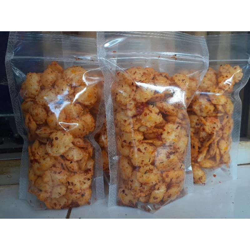 comring pedas ukuran mini dibuat dari singkong dengan bumbu cabe asli.pedasnya nampol.1kg muat 6 pcs