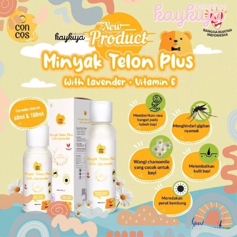 Concos Telon Oil dengan 100% bahan alami mengandung Oleum Cajuputi, Oleum Anisi, Oleum Lavender, Oleum Cocos, Oleum Chamomile dan Vitamin E yang bermanfaat menghangatkan dan melembutkan kulit bayi, menghindari gigitan nyamuk dan meredakan perut kembung.