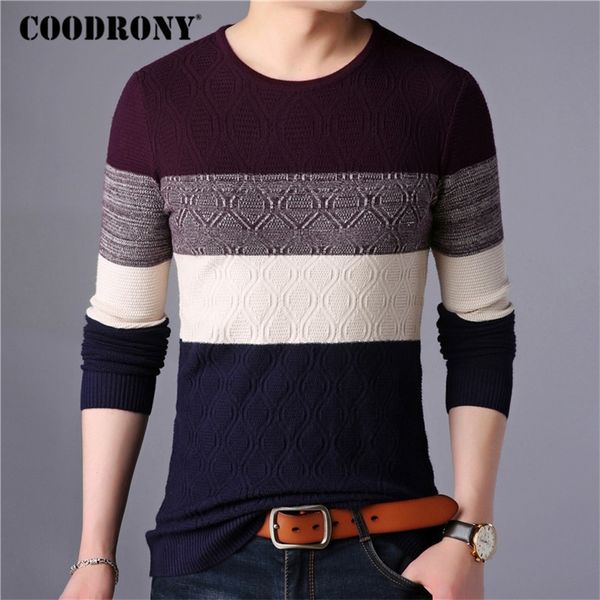 coodrony sweater men streetwear fashion striped knitwear autumn winter cotton wool pullover men slim fit o-neck pull homme 91028