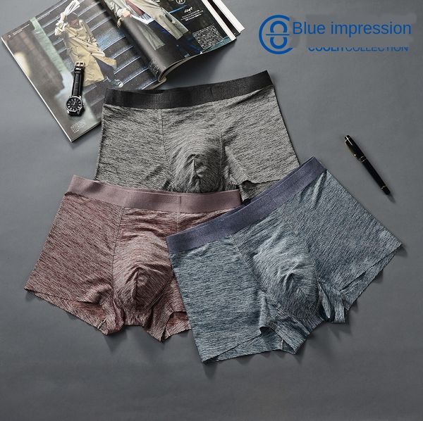 cool impression four-corner men's ice silk traceless underpants breathable large size men's boxer pants underpants, Black;white