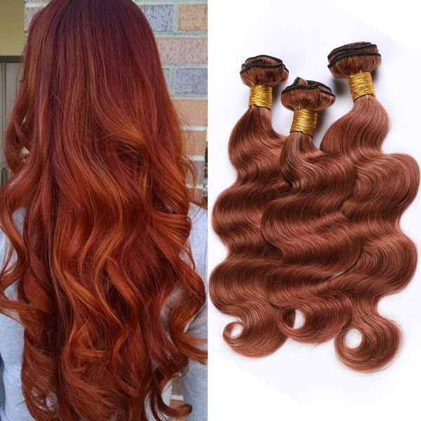 copper red peruvian virgin hair extensions body wave #33 dark auburn weaves human hair bundles reddish brown remy hair 3 bundle deals, Black
