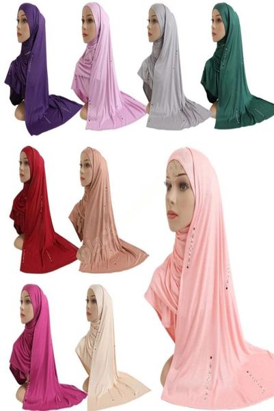cotton jersey women muslim long scarf with rhinestones modal headscarf islamic hijab wear arabic rectangular headwrap lady shawl1207766, Blue;gray