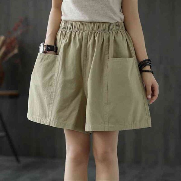 cotton linen short summer women capri casual plus size pocket elastic high waist shorts female streetwear wide womens, Black;white