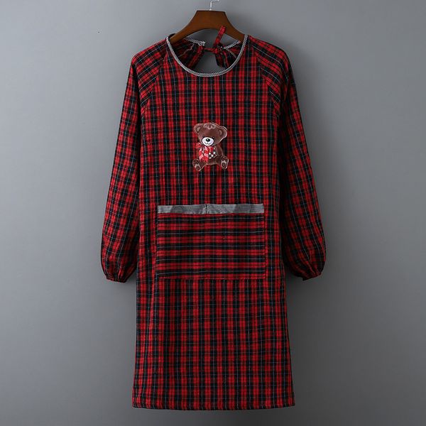 cotton plaid red back lace up women's blouse apron kitchen