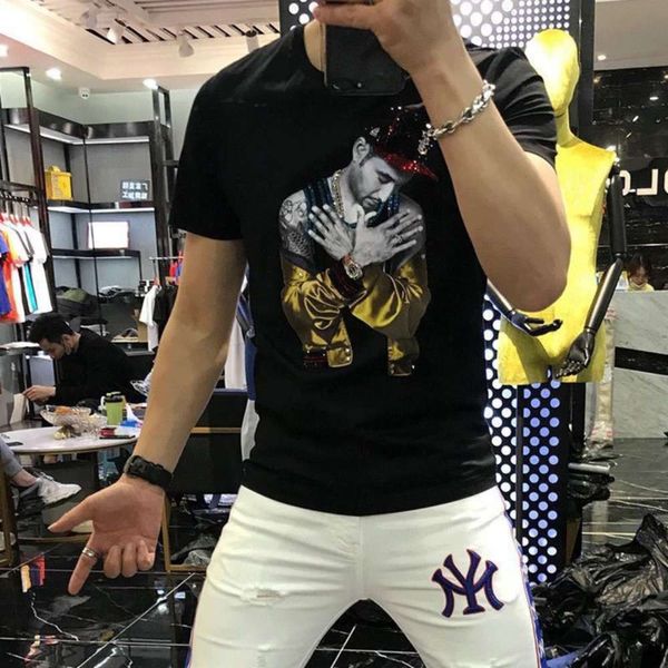 cotton polo shirt mercerized summer cloth slim half fashion brand round ne printing men's short sve t-shirt, White;black